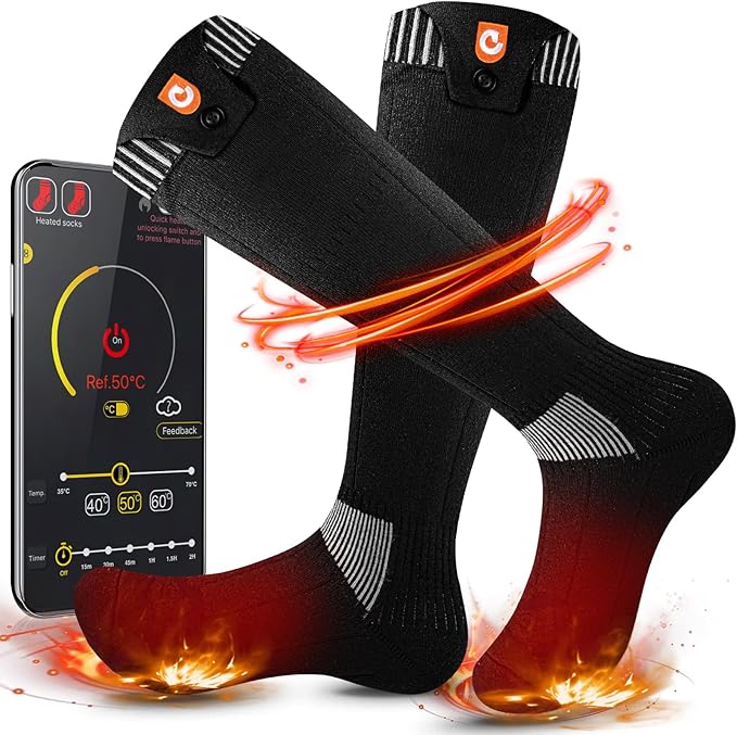Heated Socks for Men Women, 5000mAh APP Control Battery Heated Socks Rechargeable Washable, Electric Socks Foot Warmer for Hiking Biking Camping Skiing Hunting Outdoor Work, Heating Socks