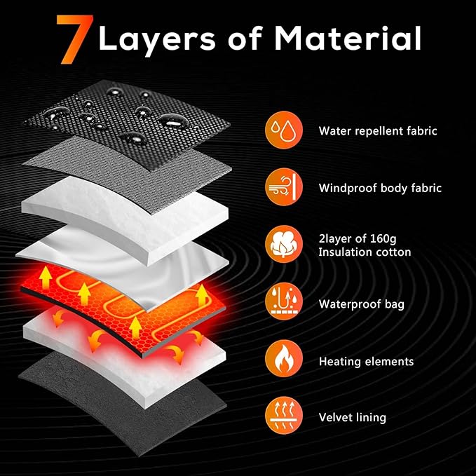 - Warmer & More comfortable: 7 layers of high-quality materials,30K super-tough double-row heating wire.The heating area covers the entire back of hand,from the fingers to the fingertips.The battery bag using diving cotton has a good temperature lock function,which extends the battery life.Velvet lining is comfortable to wear with warmth performance upgrade.Our heated winter gloves are suitable for all cold hands in winter,including arthritis and Raynaud's syndrome