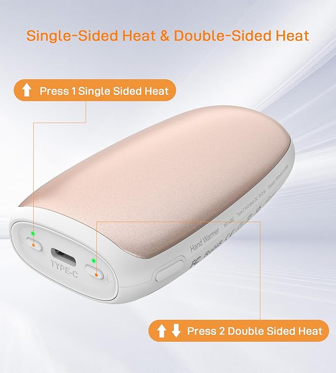 Hand Warmers Rechargeable, Electric Reusable 5000mAh Single Sided or Double Sided Heating Battery Pack for Football Winter Camping Fishing Skiing, Great Gift for Women and Men