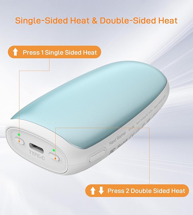 Hand Warmers Rechargeable, Electric Reusable 5000mAh Single Sided or Double Sided Heating Battery Pack for Football Winter Camping Fishing Skiing, Great Gift for Women and Men