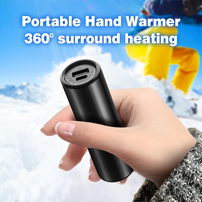 - 🔥【Hand Warmers and Power Bank】The hand warmers used imported ABS aluminum gold, take only 3 seconds to quickly heat up, 360° around double-sided heater, portable hand warmer put in your pocket/handbag. It also can be used as power bank with USB C port, supply 5V/2A output.