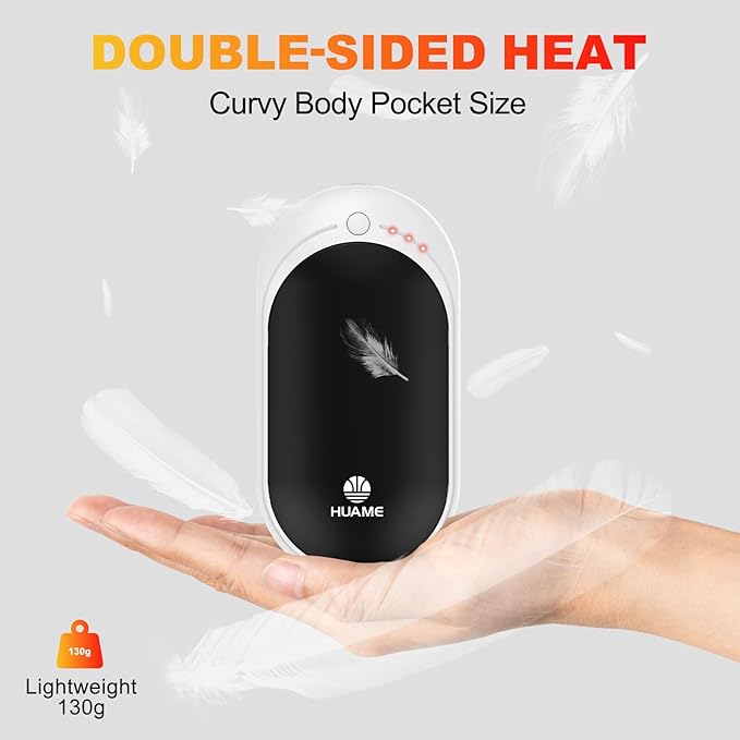 - 【3 Heat Settings & Double-Sided Heating】- This electric hand warmer has 3 levels of temperature adjustable, you can adjust the temperature by clicking the power button. double-sided heating design, fast heating in 3 seconds, built-in overheat protection chip, provide you with safer and more comfortable heat.