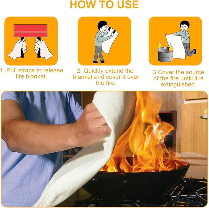 - 【Fireproof and Heat Resistant】The fire blanket is made of fiberglass, which is a flame-retardant material. The fire blanket can be used to put out small fires. It can also be used as a barrier to block the spread of fire or as a temporary heat shield.It is an essential emergency fire safety equipment that can help people extinguish the fire source promptly in case of a sudden fire.
