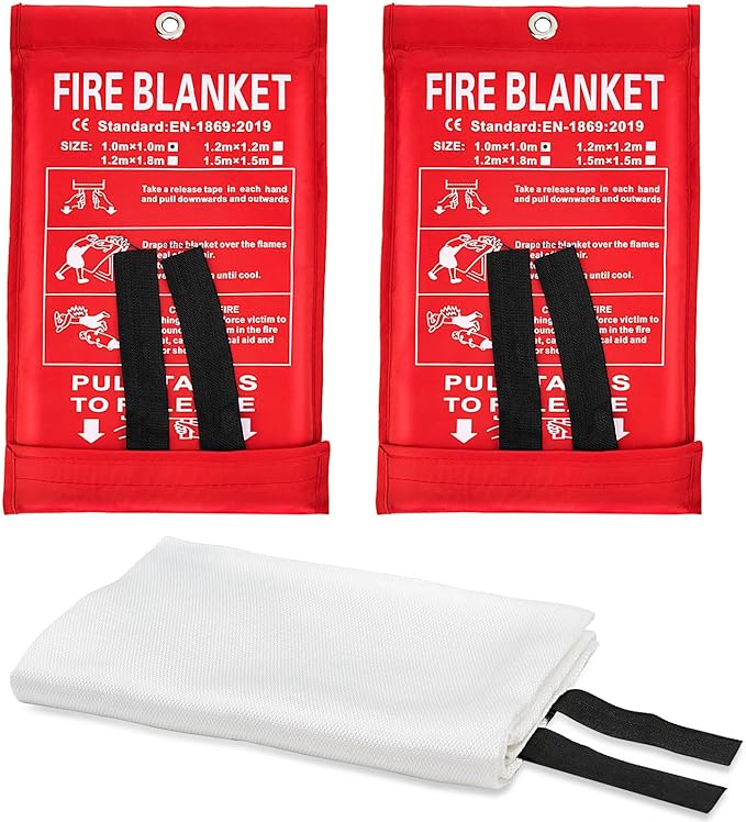 Fire Blanket Emergency for Home Kitchen, Fiberglass Fire Suppression Blanket for School, Fireplace, Outdoor Grill, Car, Office, Warehouse (2 Pack)