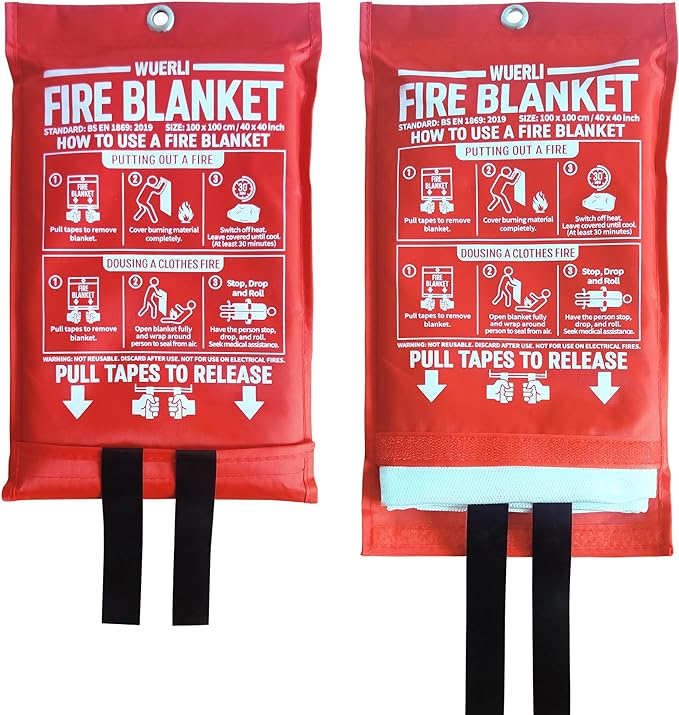 - The fire blanket comes with an evident bright red storage pouch