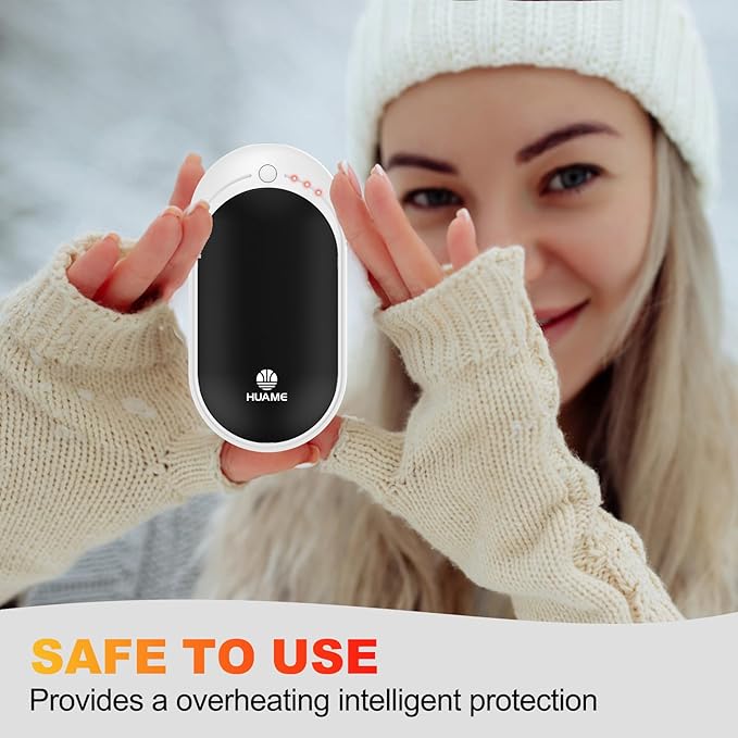 - 【3 Heating Levels & Double-Sided Heating】- This hand warmer has 3 levels of temperature adjustable, you can adjust the temperature by clicking the power button. double-sided heating design, fast heating in 3 seconds, built-in overheat protection chip, provide you with safer and more comfortable heat.