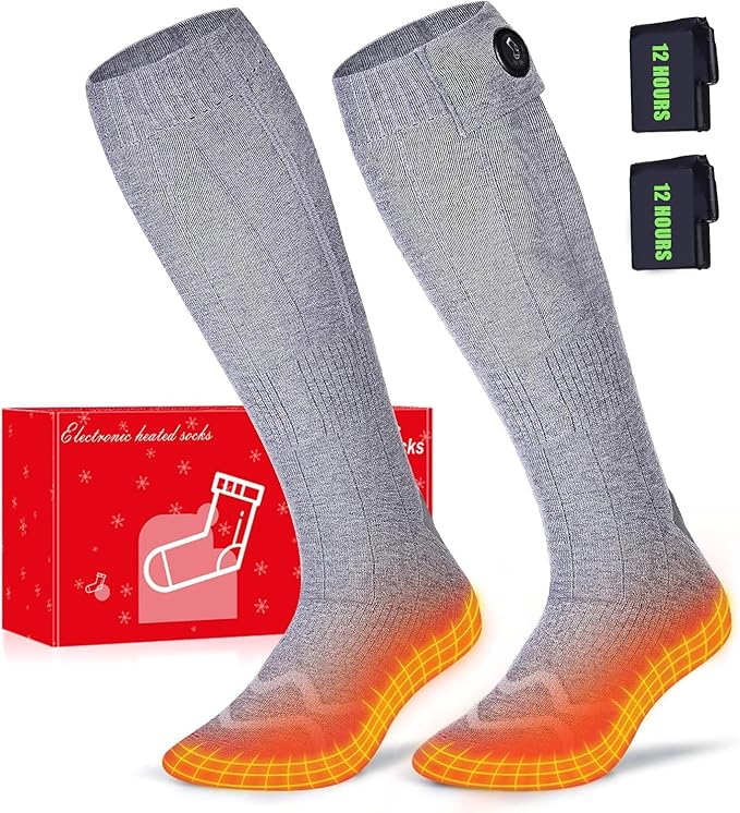 Heated Socks, 2023 Upgraded Rechargeable with 12Hrs Max Heating Time, Heated Socks for Men Women with Battery, Electric Heated Socks for Outdoors, Hunting, Golf, Camping, Warm Gifts