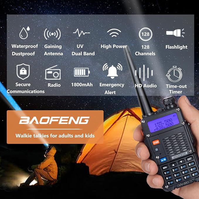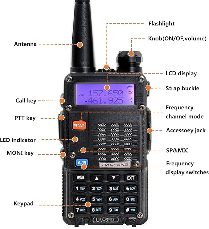 - 【5Watts High Power Radio】High/ Mid/Low Power,Dual band / Dual display / Dual standby,128 groups of storage channels;50 CTCSS and 104 CDCSS,AUTO Keypad Lock,LED Flashlight;This model has been FCC certified, FCC ID: 2AJGM-UV5RT.