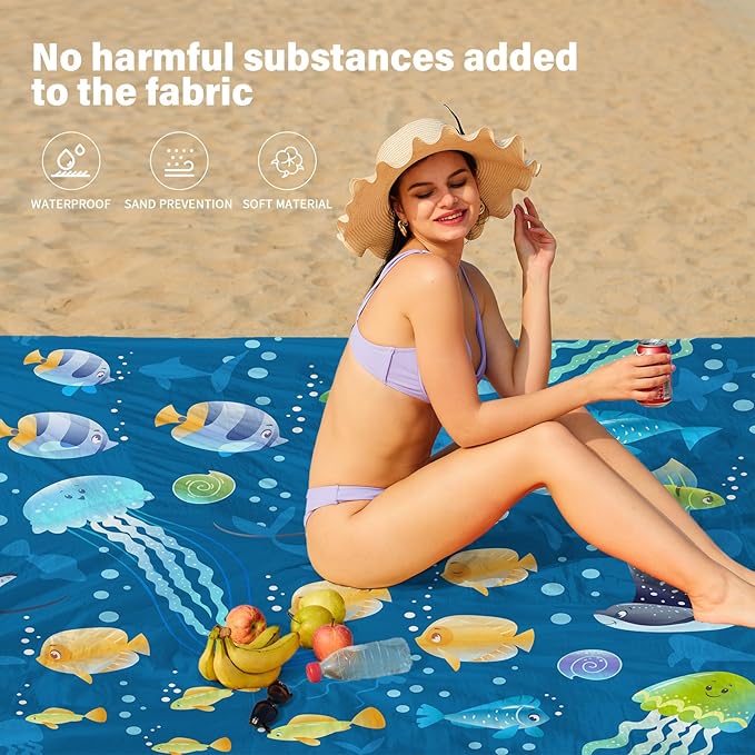 - Beach Blanket Waterproof Sandproof:Dry-Quick,Can also be used as a rain shed,sunshade,tent,toddler crawl,Emergency mat,Feel comfortable lying down.