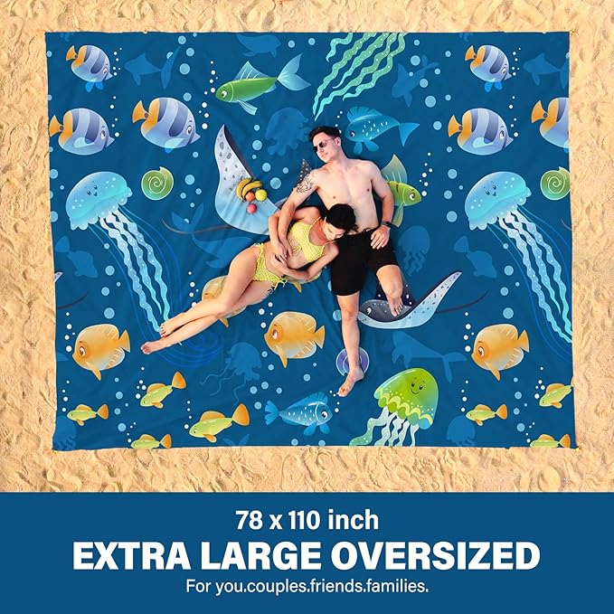 - Oversized Extra Large Beach Blanket :78" X 110"Size,2-8 Adults in total,Made by parachute fabric,More than 30% larger than other blankets,15 oz easy to carry!