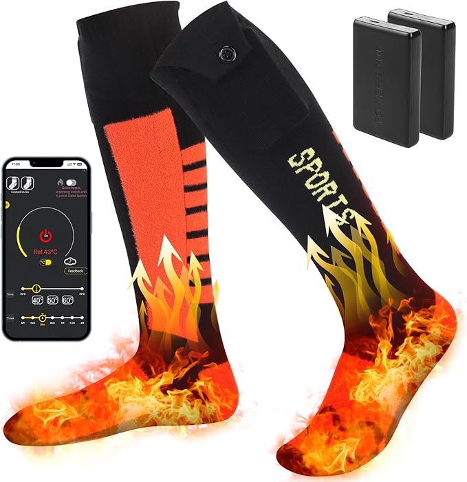 Heated Socks, Heated Socks for Men Women Rechargeable,5000 mAh Electric Heated Socks with APP Control,Heating Socks Washable Foot Warmer for Hiking Riding Camping Skiing Hunting Outdoor Activities