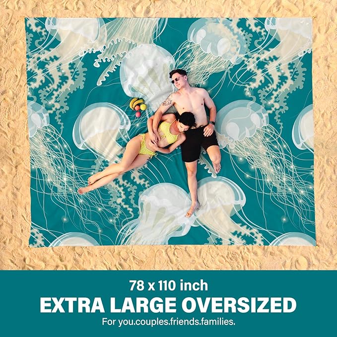 - Oversized Extra Large Beach Blanket :78" X 110"Size,2-8 Adults in total,Made by parachute fabric,More than 30% larger than other blankets,15 oz easy to carry!