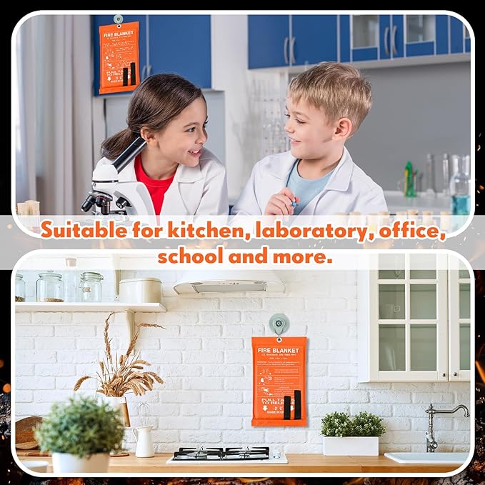 - Easy to Use: pull down tabs on the fire proof blanket, spread the blanket to cover the fire, let the emergency fire blanket sit there for a few seconds to suffocate the fire, turn off the stove or other heat source, and wait for the blanket to cool before throwing it away