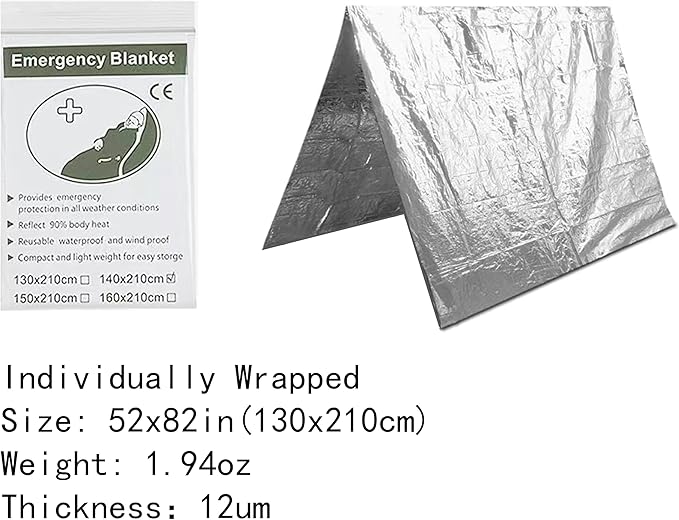 - FULL BODY PROTECTION: Each 82" x 52" emergency thermal blanket for camping is bigger than normal safety camping emergency blankets.