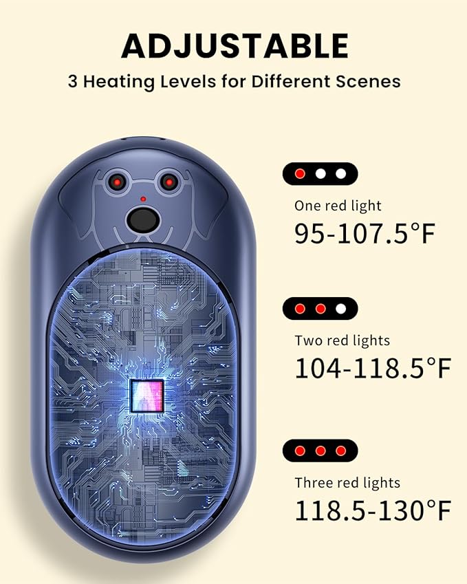 - 【3 Levels of Adjustable Temperature】rechargeable hand warmer can quickly heat to 130°F in 3 seconds and provide up to 4-10 hrs of heating time, which is suitable for the heat therapy needs of patient