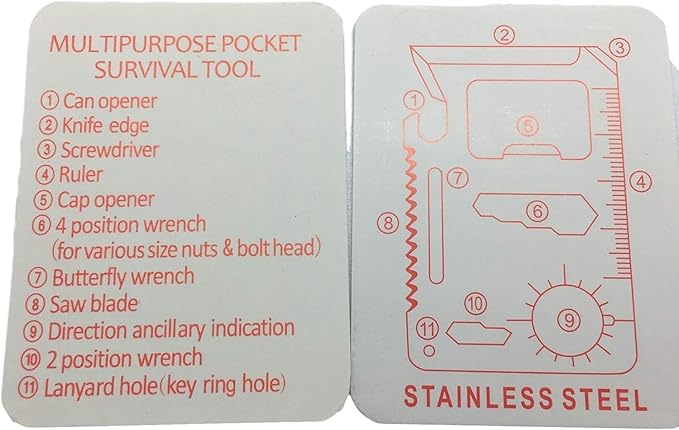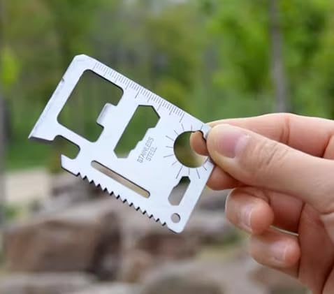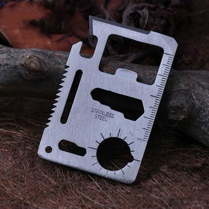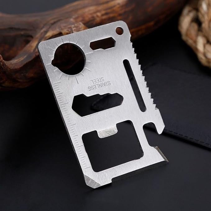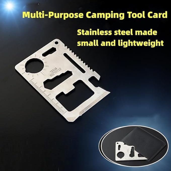 Gixaxak Outdoorsman 11 in 1 Stainless Steel Credit Card Pocket Sized Survival Multi-Functional Gadget Tool for Camping Hiking or Emergency Survival Multitool Card Camping Tool EDC Kit in Your Wallet