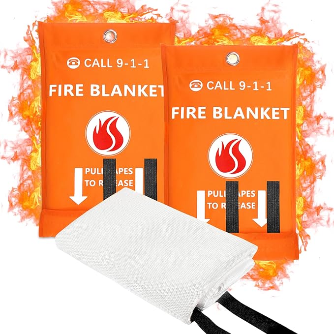 2024 2 Pack Emergency Fire Blanket, Fire Extinguisher Blanket, Fire Suppression Blanket, Flame Retardant Blanket Fire Safety Blanket for Home,Kitchen,School,Grill,Car,Office,Warehouse(40”x40”)
