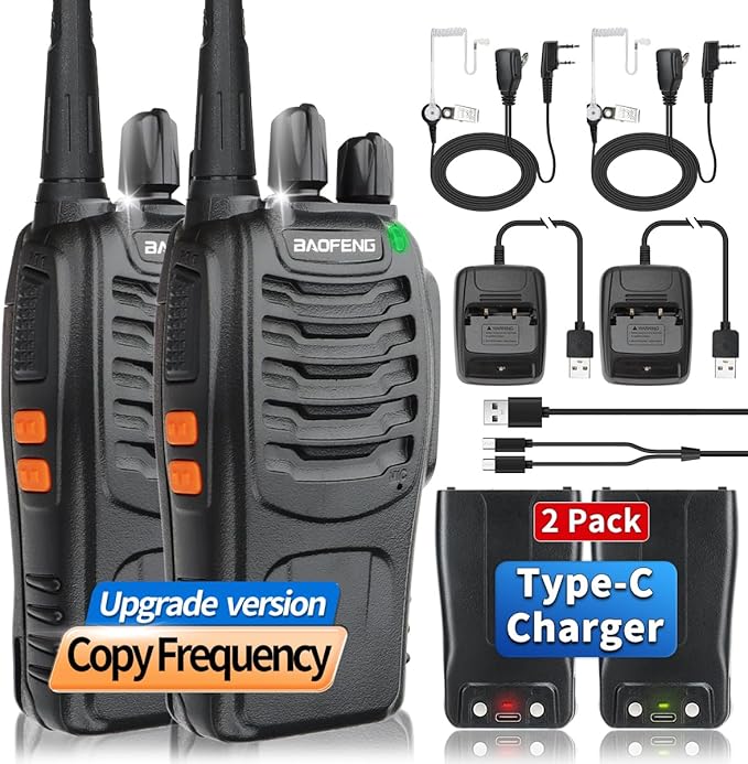 Baofeng Walkie Talkies Long Range for Adults Walkie Talkie with Acoustic Tube Earpiece Rechargeable 2-Way Radios Copy Frequency Handheld Two Way Radio Transceiver Walky Talky with USB Charger