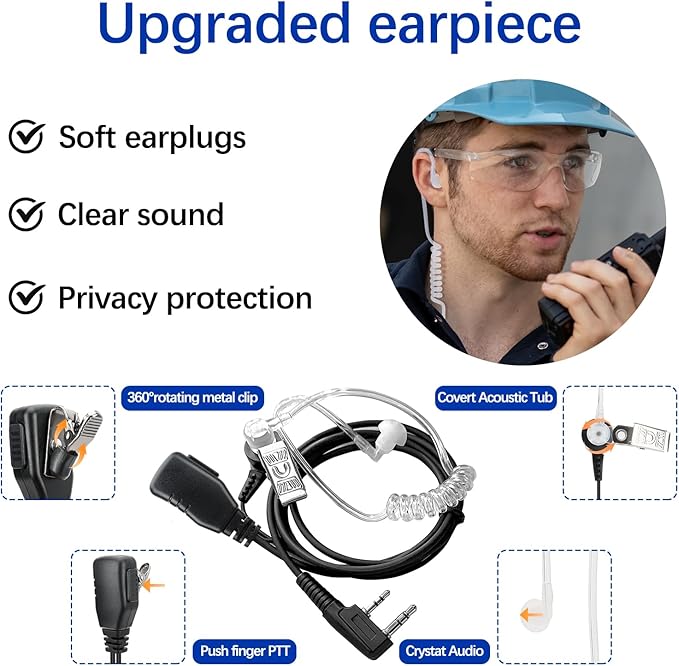 - Improve Communication Sound Quality: Each walkie talkie is equipped with Air Acoustic Earpiece, allowing you to hear your companions voices clearly even in noisy environments, providing you with a unique user experience.