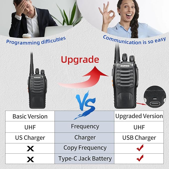 - Copy Frequency: Easily decipher the frequency of another ham walkie talkie without the need for computer programming.