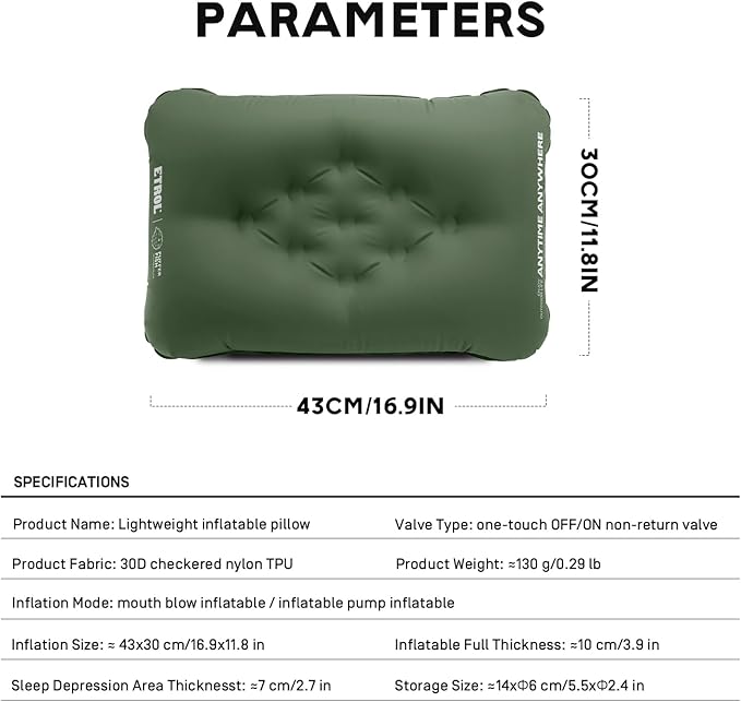 - WEAR-RESISTANT AND COMFORTABLE - The surface layer of the durable sleeping pillow is a high-density 30D checkered nylon TPU material, which is both soft and skin-friendly, and wear-resistant and tear-resistant. The inner layer has TPU film layer, airtight stronger not to leak, and waterproof and moisture-proof role.
