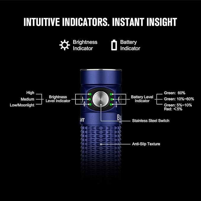 - [𝗦𝗺𝗮𝗹𝗹 𝘆𝗲𝘁 𝗣𝗼𝘄𝗲𝗿𝗳𝘂𝗹] The Baton4 edc flashlight has a max output of 1,300 lumens and a light range of 170 meters