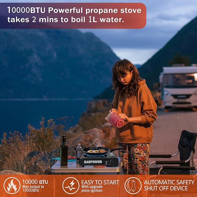 - 🔥【Portable Butane Camping Stove】GASPOWOR butane stove includes a durable hard-shell carrying case, enhancing portability for your convenience! And our portable butane camping stove crafted from high-quality materials, ensuring its durability. Additionally, we offer a 1-year warranty . If you encounter any post-purchase issues, our professional support team is available to assist you at any time.