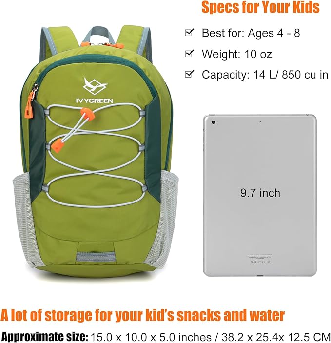- Small size:15.0 inches x 10.0 inches x 5.0 inches. Capacity: 14L. Fit little kids to pack more needs in adventure