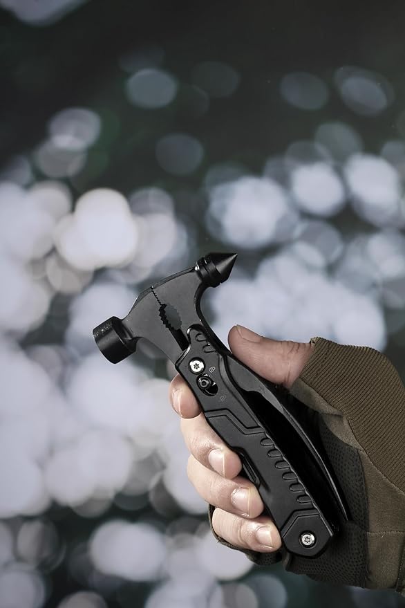 - ERGONOMIC DESIGN - High-quality and lightweight multifunctional survival hammer 14 in 1 is made of stainless steel. The ergonomic aluminum alloy handle provides you with a comfortable grip during use. The small size of 5.43 x 2.47 inches will allow you to carry it in your pocket and use it whenever you need it.