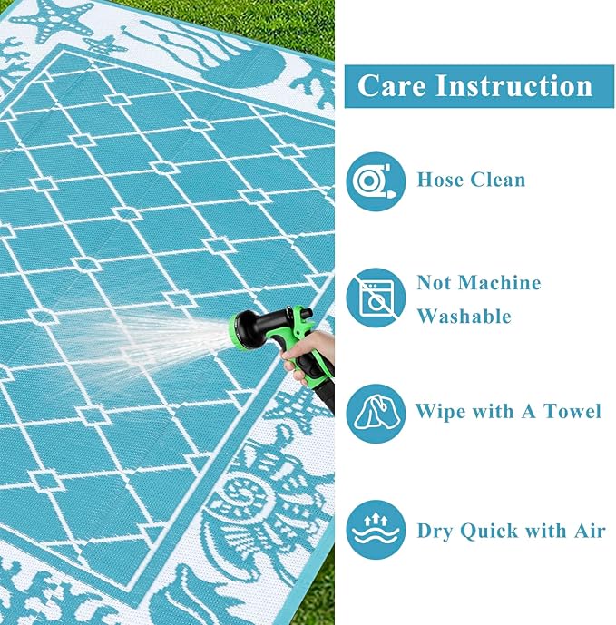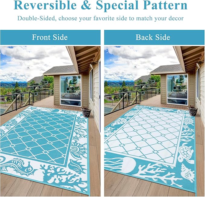 - Fully Reversible Rugs: The outdoor rug for patio is fully reversible, which is more practical than other ordinary rugs. And the outdoor carpet adopts trendy, cute and geometric patterns, which will help you add chic and comfort to your home, patio or RV