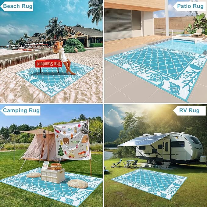 - Multiple Uses: The deck rug is lightweight, delicate, and easy to carry. Perfect for various occasions such as RV, patio, backyard, deck, picnic, beach, camping and so on. It is also ideal as a gift for your wife, friends, parents, kids and family