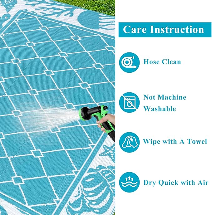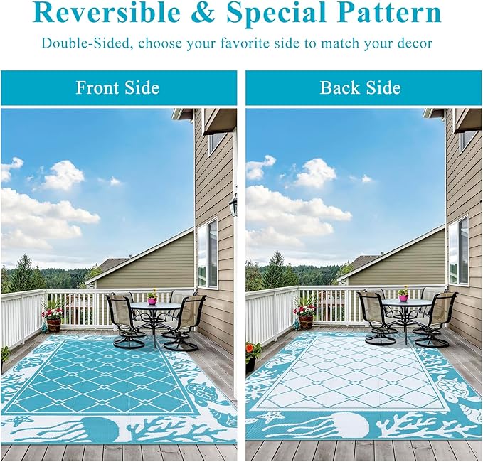 - Fully Reversible Rugs: The outdoor rug for patio is fully reversible, which is more practical than other ordinary rugs. And the outdoor carpet adopts trendy, cute and geometric patterns, which will help you add chic and comfort to your home, patio or RV