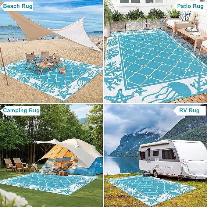 - Multiple Uses: The deck rug is lightweight, delicate, and easy to carry. Perfect for various occasions such as RV, patio, backyard, deck, picnic, beach, camping and so on. It is also ideal as a gift for your wife, friends, parents, kids and family