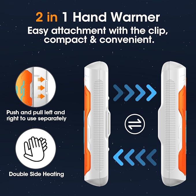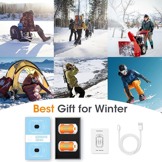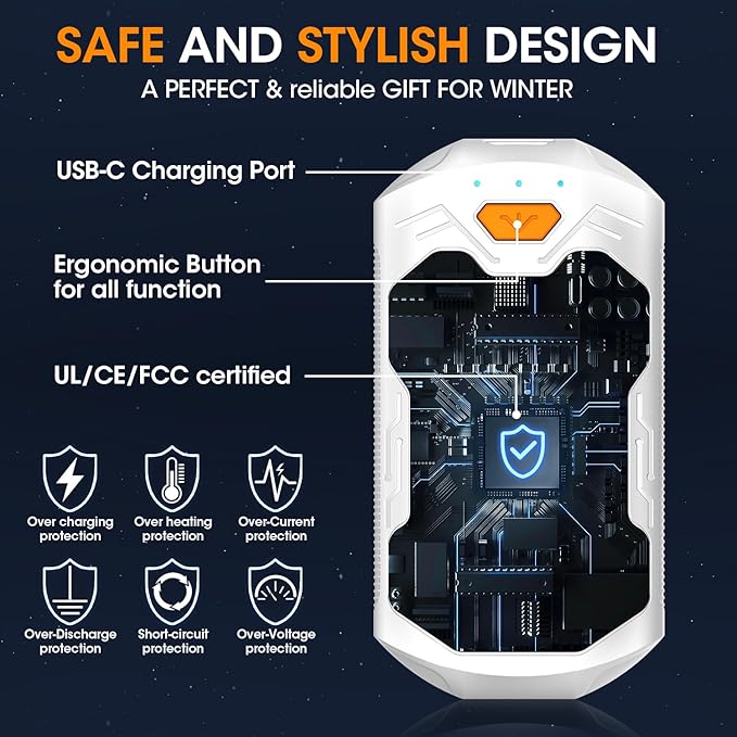 - 【Safety Certified & Premium Quality】Certificated with UL, CE, and FCC.The 2023 upgraded portable handwarmers have multiple protection technologies and built-in UL certified batteries. Hand warmers are made of high-tech aviation-grade aluminum and ABS material, thousands of polished exterior materials, easy to hold, warm and smooth, portable and compact, bringing warmth all day long.Making you and your loved ones safer and warmer.