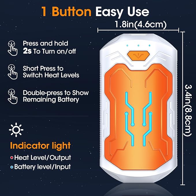 - 【2s Instant Heat & 3 Heat Levels】 These electric hot pockets hand warmers release heat in just 2 Seconds. Double-sided heat up to 131°F/55°C operating temperature and 3 levels of temperature settings for adjustable and precise stable comfortable warmth.Give you quick relief from the cold and experience the healing power of heat therapy.