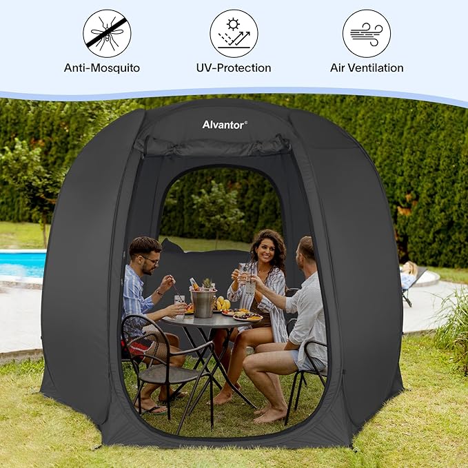 - Enhanced Version: Experience the ultimate protection with our UPF 50+ UV shielded tent. Our innovative design safeguards you from harmful sun rays, ensuring your well-being. While it may not be waterproof, when fully zipped up, it provides insulation and privacy all year round. Perfect for exclusive gatherings, restaurants, and especially private events where guest privacy is paramount. Simply zip up the doors and windows to create a secluded oasis of tranquility.