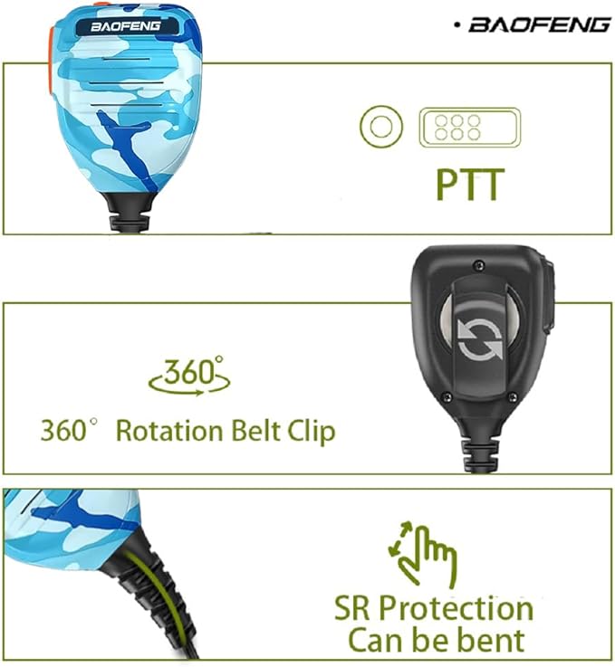 - Special Feature : Noise Canceling, Long Range, Waterproof, Dual PTT, Blue Camo