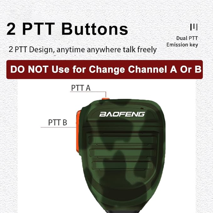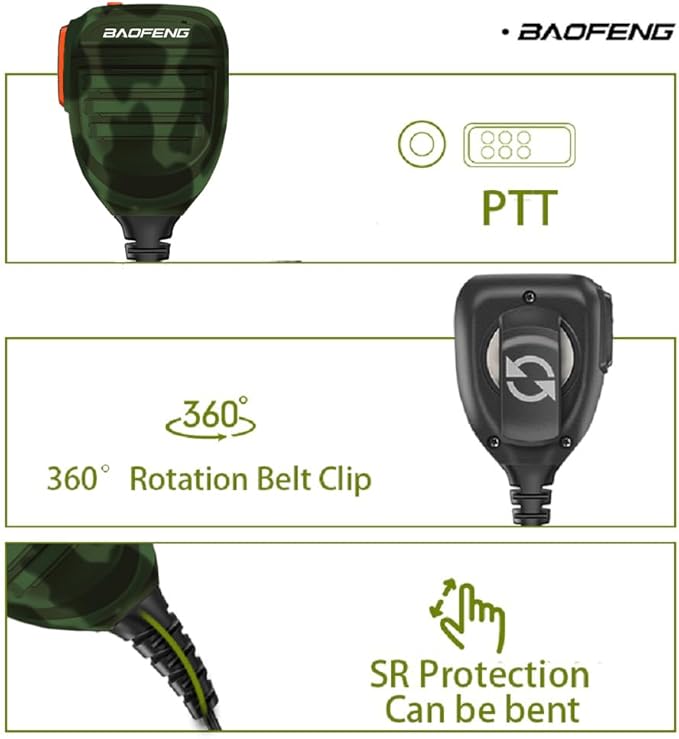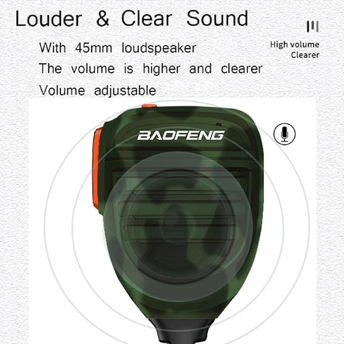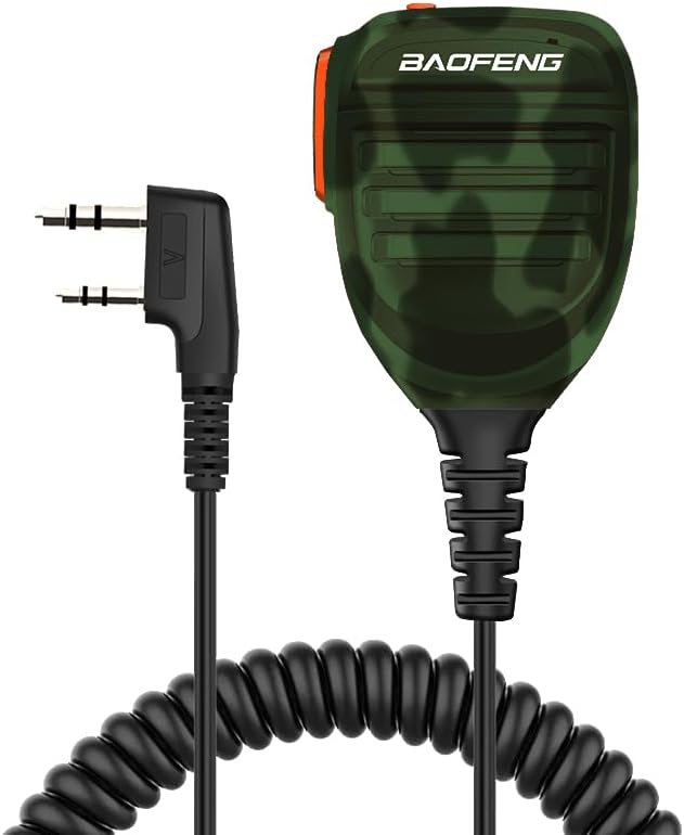 BAOFENG BF-F8HP Microphone Speaker Handheld Mic Waterproof Upgrade of Original BF Mic for GMRS Ham Radio 2Pin K Mic Camo Compatible with UV-K5 UV-82 UV-S9 Plus UV-17R P15UV
