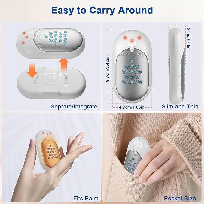 - Lightweight & Portable: 3.42*1.85*1.5inch (5oz) pocket electric heater, slim and thin, fits palm and pockets, easy to carry around. Packed well with giftable packaging box, all colors are suitable for men and women, mother, father, kids, friends. Ideal winter gift for Christmas, Birthday, Anniversary, Thanksgiving, etc.