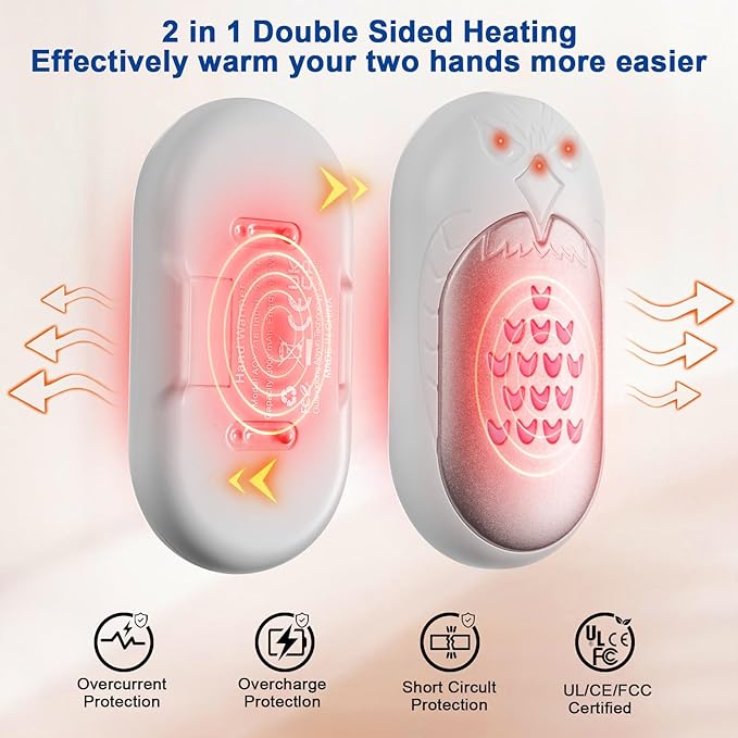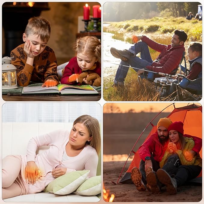 - 3s Fast Heating & Safety to Use: Our electric hand warmers adopts upgraded heating elements and premium chip control system to deliver heat quickly in just 3 seconds, reay to use and drive away cold quickly, with UL, CE, and FCC certificated, you can feel ease to enjoy warmth while camping, hiking, sledding, outdoor photography, dating, walking, shopping, running, fishing, hunting, skiing, make a snowman, golf, Raynauds, etc.