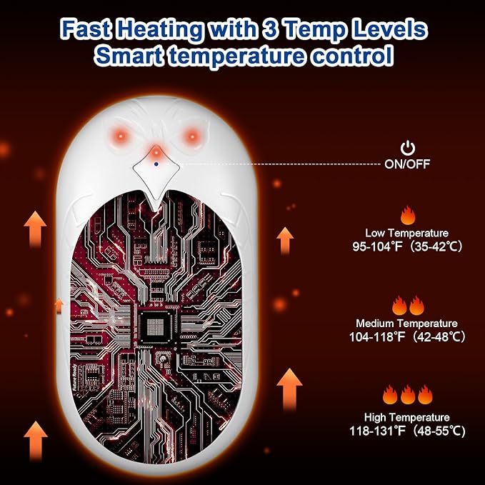 - 3 Heat Levels & Smart Temperature Control: Our portable hand warmers can be adjusted freely to low/medium/high heating level to meet your demands. Feature with smart temperature control system, can give you suitable and comfortable feeling for hands, warm you and care you