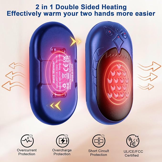 - Long Lasting Warmth with 6000mAh Battery: Built in 3000mah*2 battery, this rechargeable hand warmers can last up to 20hours warmth for double pack usage, and up to 40hours for single pack usage. Bring you continuous warmth throughout the day