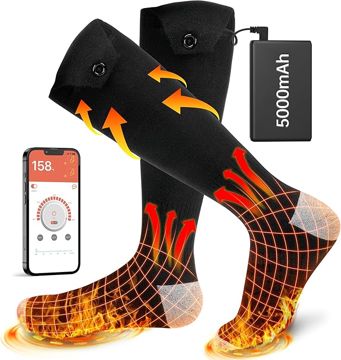 Heated Socks for Men Women with APP Control,5000mAh Rechargeable Electric Heated Socks,4 Heating Settings,Outdoor Camping Skiing Hunting