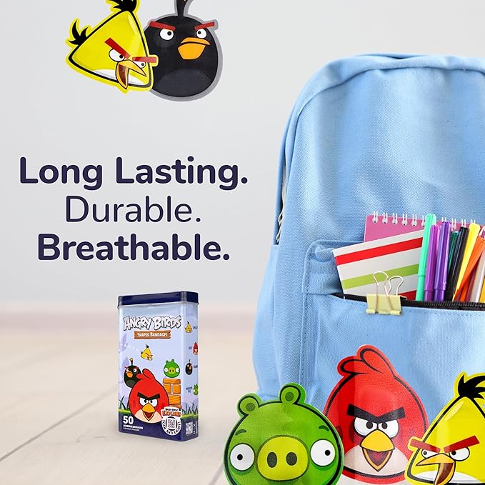 - EASY TO CARRY AND USE: These cute and colorful Angry Birds children's bandages are easy to take with you for travel, and easy to store in a home first aid kit; these healing bandages are perfect for school, summer camp, camping trips, weekend getaways and more