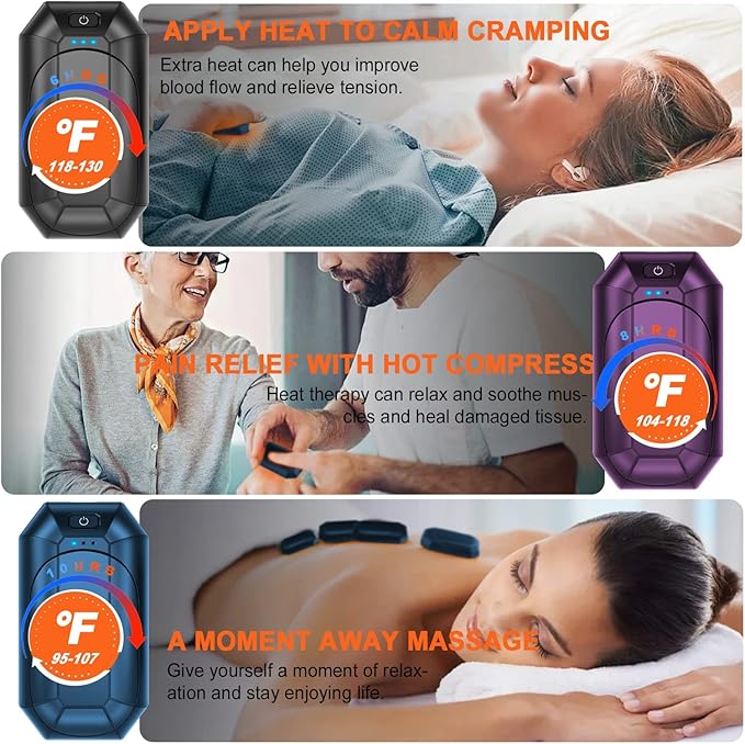 - 😀[Enjoy the Warmth Tailored to You] WARMHAND'S pocket hand warmers rechargeable offers 3 levels of heating with temperatures ranging from 95℉ to 130℉, providng cumulative 6-10 hours of warmth. Furthermore, whether it is back pain, cramps, or premenstrual syndrome, this hand warmer works like a charm in relieving the pain and making you feel better. They are compact enough to fit inside your set of gloves or even your pant pockets, emanating constant heat while keeping your blood flowing.