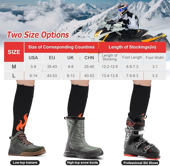 - 【Perfect & Versatile use】 Our foot warmers for women are packed by a beautifubox, perfect for families and friends on Christmas, birthdays, Thanksgiving days. These heated socks are not limited to just one type of footwear. Heated socks for men can be used in boots, shoes, slippers, or any other kind of closed-toe footwear, making them a versatile that can be enjoyed in various situations. It's a thoughtful that brings comfort and relief to someone's feet.