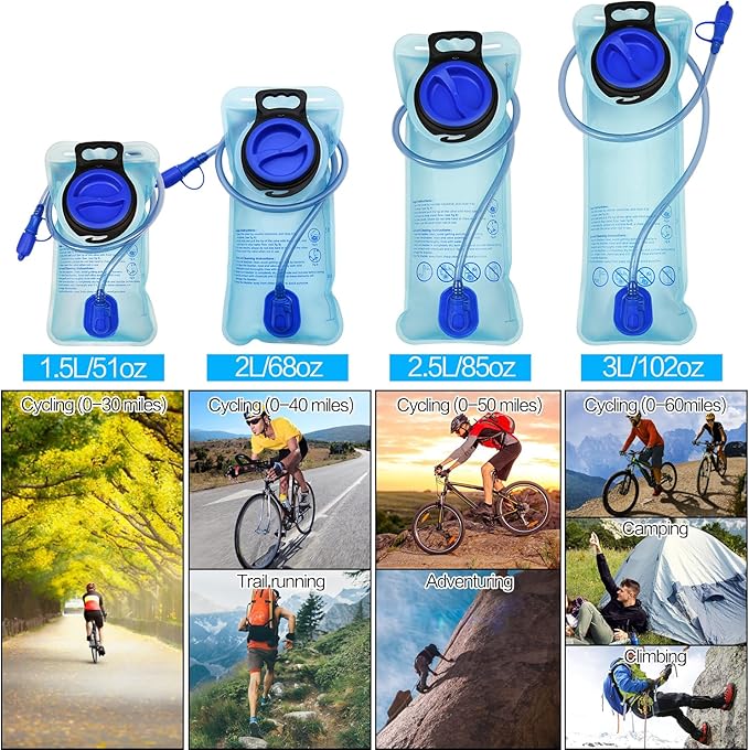 - 【Package Include】- Package includes 8 pack 2L blue hydration bladder. It is suitable for trail running and and cycling (0-40 miles).