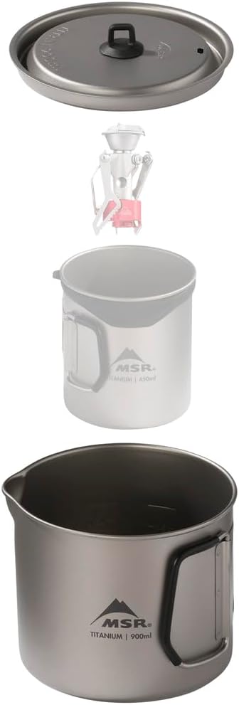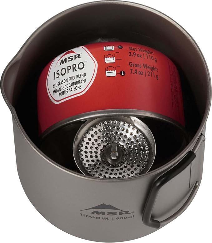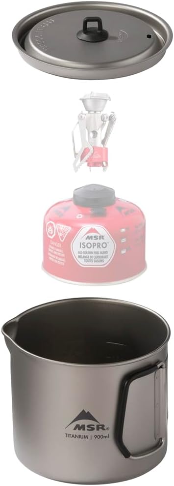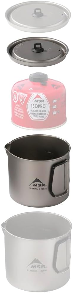 - 900mL pot can accomodate an MSR PocketRocket 2 or Deluxe Stove and a 4oz IsoPro fuel canister, or a Titan camp mug , creating a minimalist camping cook set (items sold separately)