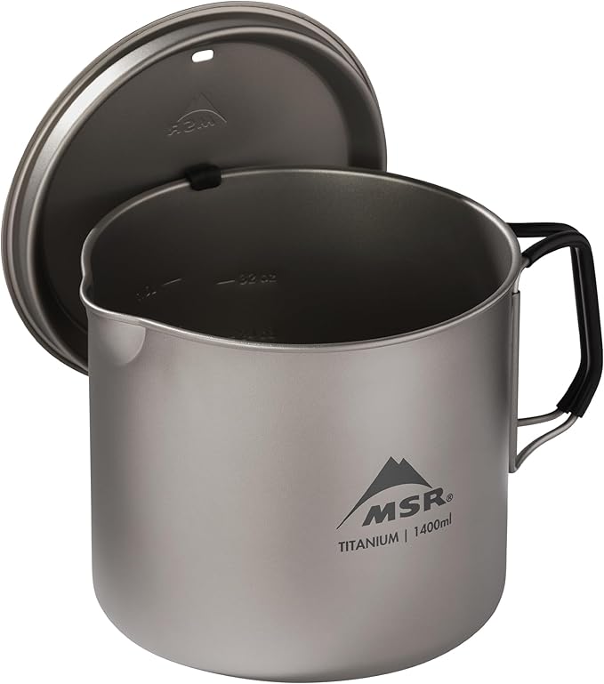 - 1400mL pot can accommodate an MSR PocketRocket 2 or Deluxe Stove with an 8oz IsoPro fuel canister, or a 900mL Titan Kettle with a 4oz IsoPro canister, for creating a minimalist camping cook set (items sold separately)