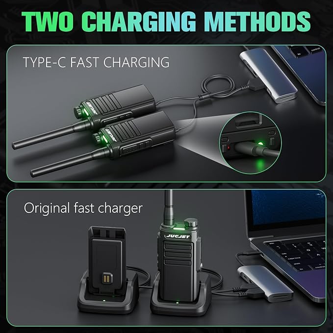- 【JUCJET Waterproof Walkie Talkies for Outdoor 】The unique sealing design makes the MP31 waterproof to IP54, enhancing its outdoor performance. With MP31, you can rest assured to make communication while camping, fishing, and hiking without worrying about rain splashes.